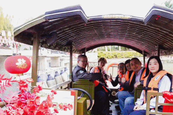 作為本次春茗活動的亮點環節之一,新明珠集團特別安排了媒體朋友們乘船游覽紫南村,親身感受南莊水鄉的獨特魅力。乘船穿梭于碧水綠蔭間,媒體朋友們不僅領略了水鄉風光,更在輕松愜意的游船過程中暢談交流,進一步加深了友誼與互動,為活動增添了溫馨愉快的氛圍。