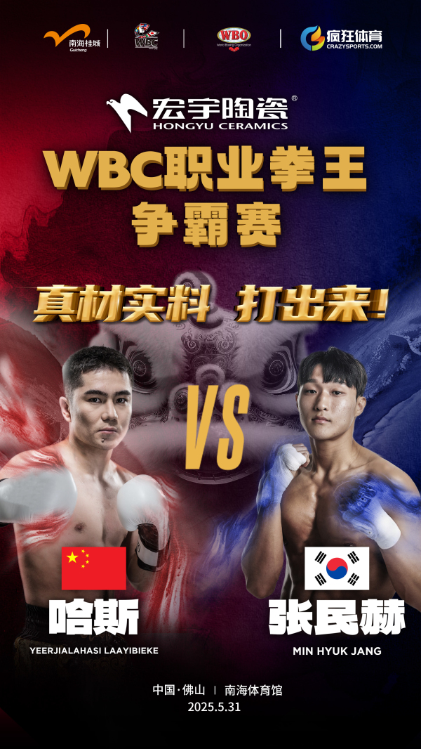 2025宏宇陶瓷·WBC拳王爭霸賽賽事亮點紛呈,屆時四大洲十個國家的頂尖職業拳手展開巔峰對決,其中雙金腰帶誕生的亞洲拳壇巔峰對決備受矚目,WBO超羽量級東方洲際金腰帶的持有者哈斯迎戰韓國國家拳王張民赫,中國超雛量級三冠王拳手、曾獲WBO/WBC/IBF三條亞洲拳王金腰帶的劉中將對陣菲律賓頂尖拳王。