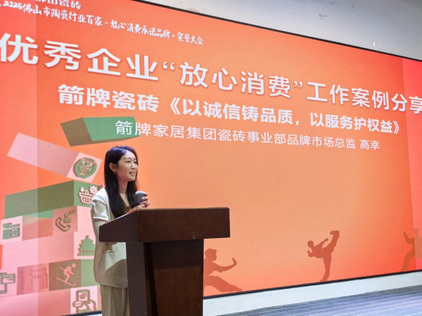 隨后,大會進入了優秀企業“放心消費”工作案例分享環節。箭牌瓷磚作為行業佼佼者,其品牌市場總監高幸代表箭牌家居集團瓷磚事業部發表了題為《以誠信鑄品質,以服務護權益》的主題演講。高總詳細闡述了箭牌瓷磚在誠信經營、品質管控、消費者權益保護等方面的舉措和成效,分享了企業如何通過不斷創新和優化服務,贏得了廣大消費者的信賴和支持。箭牌瓷磚的成功經驗,為與會企業樹立了典范,激發了大家共筑誠信消費環境的信心和決心。