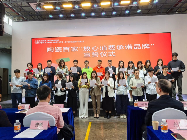 大會的高潮部分,無疑是陶瓷百家“放心消費承諾品牌”宣誓儀式。在主持人的引領下,來自佛山市陶瓷行業的百家優秀企業代表依次上臺,鄭重宣誓將秉持誠信經營原則,嚴格遵守國家法律法規和行業規范,為消費者提供高品質的產品和優質的服務。這一莊嚴的宣誓,不僅是對消費者的鄭重承諾,更是佛山陶瓷行業自我約束、自我提升的重要體現。