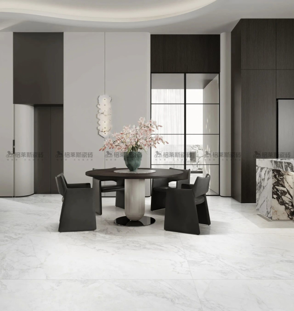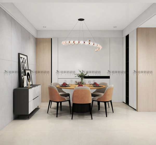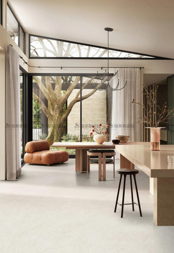 平衡的原生色系是自然中最耐看、最經典的和諧的配色,給人平和自恃的舒緩雅致,磚面淡淡雪白的紋理如梨花漫天飄揚,如飛絮漫過無垠的蒼穹,云淡風輕地把自然納入家中。