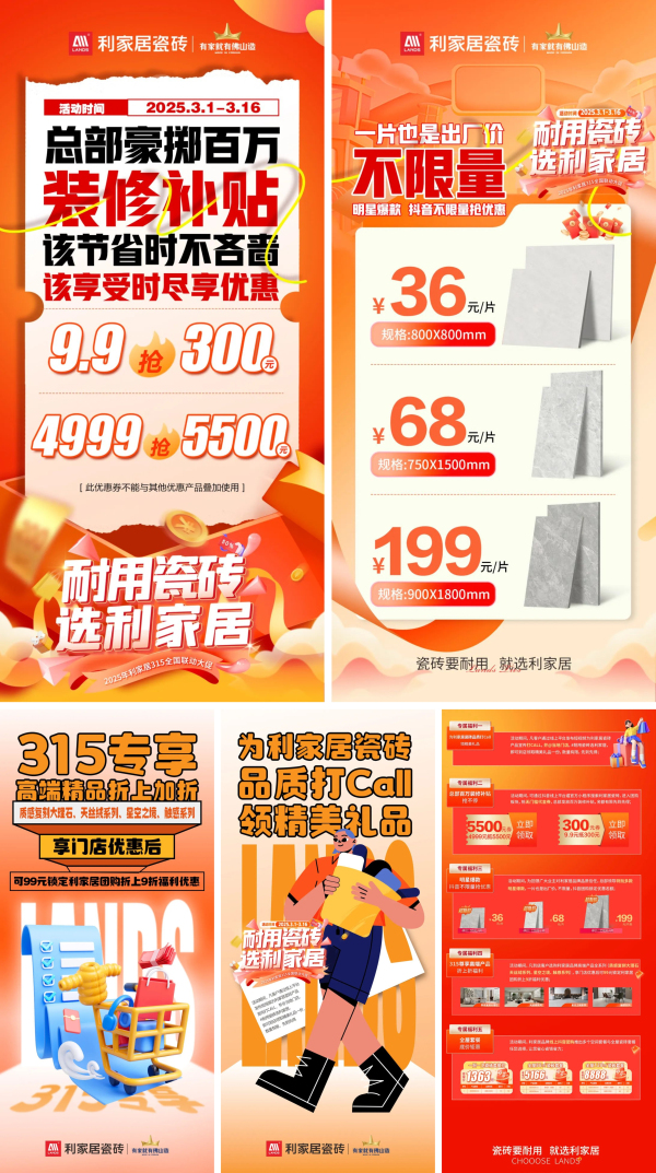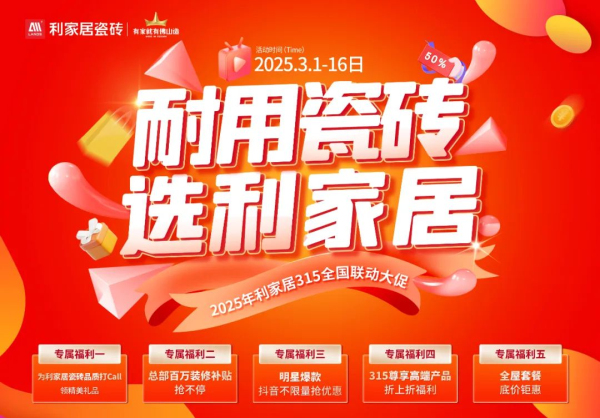 在這個(gè)春意盎然的3月,利家居瓷磚以「耐用瓷磚,選利家居」為主題,開(kāi)展為期16天的“2025年利家居315全國(guó)聯(lián)動(dòng)大促”活動(dòng)圓滿收官。此次鉅惠精準(zhǔn)觸達(dá)全國(guó),各終端門(mén)店熱烈響應(yīng),捷報(bào)連連,熱情如火,業(yè)績(jī)?cè)倥市赂叻濉2粌H是一場(chǎng)購(gòu)物盛宴,更是一次對(duì)耐用品質(zhì)的深情告白!