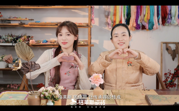 時至2025,格萊斯再度升級破圈戰(zhàn)略:聯(lián)合非遺絨花傳承人征珊珊、非遺文化達(dá)人林三月共創(chuàng)紀(jì)錄片《詩意東方·瓷韻絨光》。這部紀(jì)錄片聚焦非遺技藝煥新與傳承,以“傳統(tǒng)工藝的傳承與新生”為敘事主線,圍繞林三月拜師征珊珊精進(jìn)絨花制作技藝展開,用鏡頭捕捉每一縷蠶絲線到栩栩如生絨花的誕生過程,更用動態(tài)影像解構(gòu)格萊斯新品「藏·雍雅」系列瓷磚,展現(xiàn)傳統(tǒng)非遺技藝在新時代設(shè)計理念中的傳承與重生。