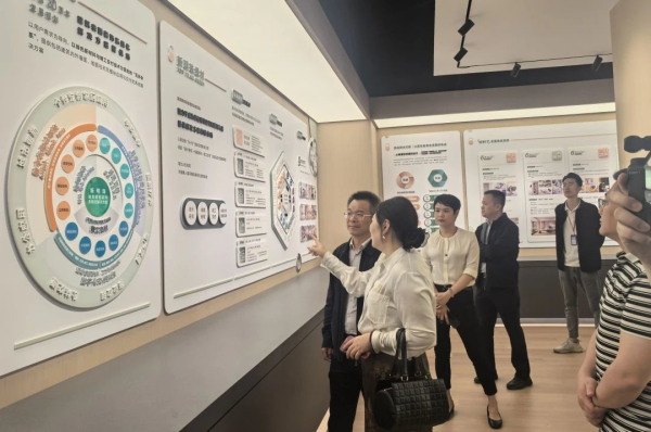 隨后,調研組走進新明珠集團智筑生態中心,在新明珠集團副總裁、董事會秘書高世杰的介紹下,通過應用空間實景、數字化設計平臺及前沿產品矩陣的展示,參訪嘉賓直觀感受新明珠集團“建筑表面裝飾系統化解決方案提供商”的戰略落地。