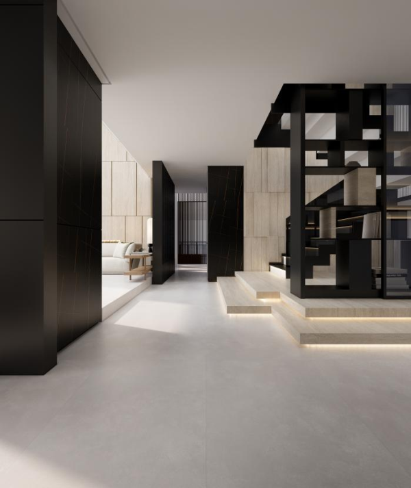 創新推出 750×1500mm&600×1200mm 黃金子母規格,大磚鋪陳客廳盡顯大氣層高延展,小磚適配廚衛臥室精準裁切,任意連紋設計可實現紋理無縫銜接,全屋通鋪一體化,提升設計整體性。