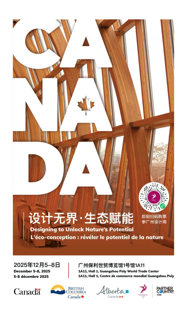 此外,加拿大駐廣州總領事館將攜CRAFT 安派森、Hi-Velocity加拿大節能公司、Cloverdale 科洛德、XYPEX 賽柏斯等加拿大家居建材領軍品牌和北美先鋒設計品牌共同打造“2025廣州設計周主賓國——加拿大國家館”,將聚集木結構建筑、木地板、環保材料、生態空調、創意家具設計等領域,呈現加拿大在設計美學、生態科技與健康生活領域的獨特探索,展現“健康生活”與“生態友好”的雙重哲學。