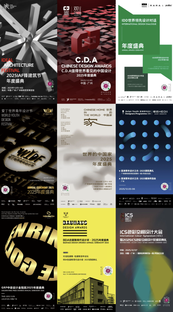 來廣州設計周,洞察國際設計趨勢,交互中國設計出海全球的分享和思考,相關活動包括:2025IAF鋒建筑節年度盛典、C.D.A值得世界看見的中國設計·2025年度盛典、IDD世界領先設計對話2025年度盛典、WYDF愛丁世界青年設計節·2025年度盛典、世界的中國家2025年度盛典、2025亞洲青年設計之光年度盛典、GRP中意設計金指獎2025年度盛典、BDA包豪斯現代設計獎·2025年度盛典、ICS色彩空間設計大會暨2025ICS色彩空間設計獎頒獎典禮……等。