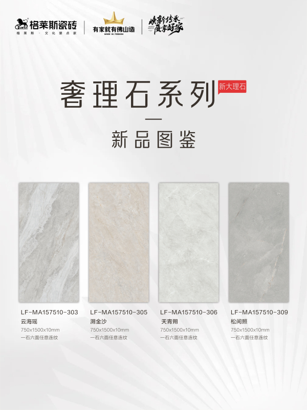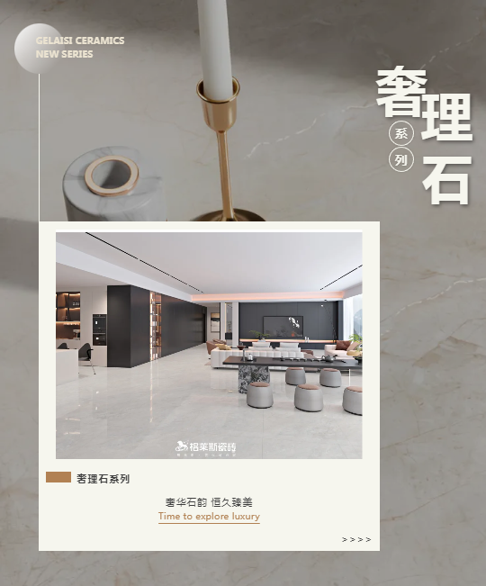 以高比例干粒成釉提升表面清透感,大理石紋理呈現更清晰逼真,一石多面的肌理靈動舒展,成就顏值空間的自然之美。任意連紋鋪就恢弘畫卷,為空間打造奢華格調。