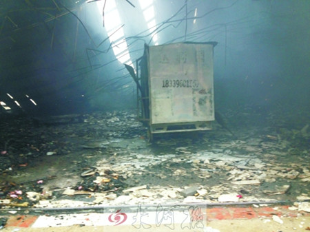 記者進入警戒線發(fā)現(xiàn),展廳是一個簡易的“大棚”,墻體已經(jīng)被燒變形,展廳內(nèi)被燒毀的家具不時躥出火苗。知情者告訴記者,當時火勢很大,上蔡縣的消防車不足以滅火,緊急從周邊縣區(qū)調(diào)來消防車參與滅火,“所幸家具城和生活區(qū)隔離,否則后果不堪設(shè)想”。