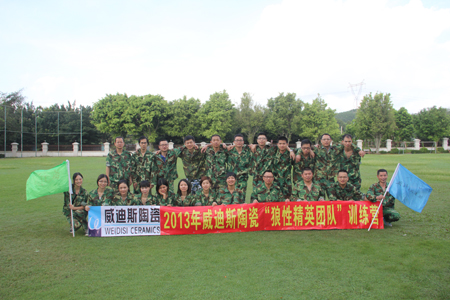 7月2-3日,2013威迪斯陶瓷“狼性精英團隊”訓練營在鶴山順利展開,威迪斯陶瓷全體銷售成員以及市場部、財務部等各個部門人員進行了兩天一夜的拓展訓練。整個拓展活動,團隊成績表現出色,斗志昂揚、滿懷信心,充分體現了團隊間團結、信任、和不畏艱難、勇于挑戰的奮斗精神,開啟2013下半年威迪斯陶瓷銷售業績全面飆升的全新篇章。