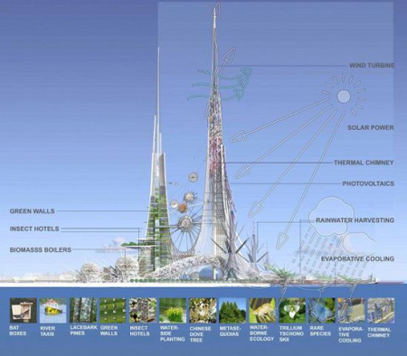 如果一切順利,雙塔的地基將于明年開工,總施工則可能需要至少3年的時間。Chetwoods借鑒了我國特有的神鳥(鳳凰)的元素,對雙子塔進行了設計。除了大樓本體,Chetwoods還為雙子塔引入了輕量級光伏包層(rlightweight photovoltaic cladding)、生物動力污染吸收層(biodynamic pollution absorbing coatings)、以及熱煙囪(thermal chimneys)等。