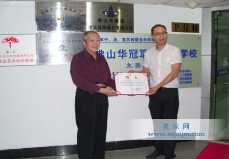 2014年10月31日,佛山華冠職業培訓學校正式聘請泛家居第一門戶——美家網CEO王建先生擔任學校副校長職務,由此拉開專業職業培訓學校聯手主流產業媒體平臺,共同打造專業的“產業人才培養基地”的帷幕。