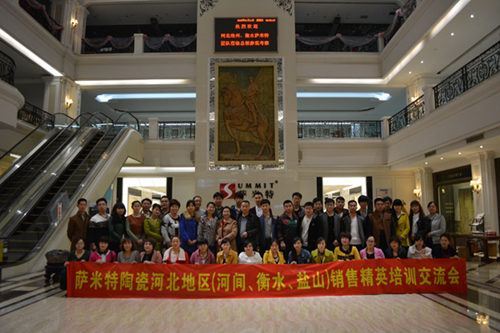 10日下午,一行人一下車顧不上長途跋涉的勞苦,首先到達薩米特總部展廳,在我們專業導購帶領下,先后參觀了十余個系列產品的實景樣板間,銷售精英們對薩米特云巖玉石系列和巴登木石系列產品的創新工藝贊賞不已,為眼前展示的“時尚美居”之景所震撼。翌日,經過一晚休息后的銷售精英們精神抖擻地前往薩米特總部二樓會議室參加培訓,接受一天的培訓課程。