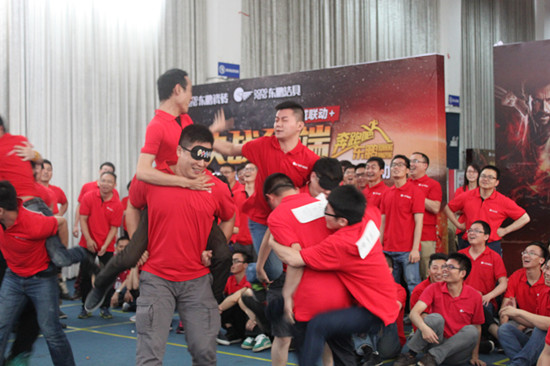 上午8:40,東鵬紅衣方陣的隊(duì)友們個個精神抖擻進(jìn)入會場,整裝列隊(duì),好一番戰(zhàn)士出征的氣勢。列隊(duì)過后,團(tuán)建活動拉開了動員大會的序幕。本次團(tuán)建活動別開生面,以“東鵬奔跑大決戰(zhàn)”為主題結(jié)合時下最流行的“跑男”元素,把200多位隊(duì)員共分為八組展開決勝終端的系列訓(xùn)練,奔跑起來!在“極速爆破”環(huán)節(jié)里,隊(duì)員們“快”的行動能力得到充分的展現(xiàn);在 “精準(zhǔn)狙擊”環(huán)節(jié)上,精“準(zhǔn)”配對以及精確傳達(dá)命令才是決勝的關(guān)鍵;在“雙人撕名牌”環(huán)節(jié)中,隊(duì)員們展現(xiàn)出如狼般渴望勝利的“狠”勁。最終,第三組別以優(yōu)異的成績獲得冠軍,東鵬控股營銷副總裁梁慧才為冠軍團(tuán)隊(duì)進(jìn)行了頒獎。