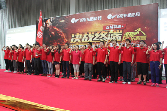 2015年家居行業(yè)呈現(xiàn)百舸爭流態(tài)勢,行業(yè)洗牌大戰(zhàn)迫在眉睫,大家居戰(zhàn)略勢在必行。為整合大東鵬集團(tuán)優(yōu)勢資源,強(qiáng)勢終端市場,塑造東鵬大品牌形象,5月9日,“決戰(zhàn)終端·奔跑吧東鵬” ——2015東鵬瓷磚、東鵬潔具聯(lián)合營銷大行動動員大會于1506創(chuàng)意產(chǎn)業(yè)園多功能廳盛大召開。東鵬控股營銷副總裁梁慧才、東鵬潔具副總經(jīng)理姚峰帶領(lǐng)200多名東鵬瓷磚、東鵬潔具各大區(qū)銷售總監(jiān)、運(yùn)營中心總經(jīng)理、業(yè)務(wù)精英參加了會議。