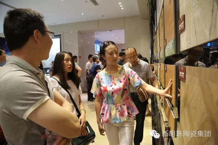 有嘉賓了解到新明珠陶瓷產(chǎn)品的價格時,轉(zhuǎn)過身與身邊的同事說:新明珠陶瓷產(chǎn)品的光澤都很好,而且也特別有質(zhì)感。另外幾位來賓到仿古磚展區(qū)參觀,異口同聲地說:“太喜歡你們這里的裝修風(fēng)格了,清新、別具一格,我家里要有新房子,就一定要這樣裝修。”