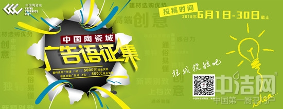 為了進一步提升和推廣“中國陶瓷城”在廣佛地區中高端消費者的認知度與社會知名度,讓更多的中高端消費者接觸到更多優質陶瓷衛浴產品,現向社會各界同仁廣泛征集廣告語!