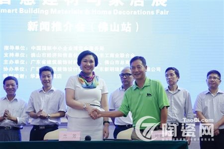 5月21日下午,“中小企業博覽會,建材行業大平臺”——“第十二屆中國國際中小企業博覽會智慧建材與家居展”佛山站新聞推介會在華夏明珠大酒店中廳隆重舉辦,佛山市市委統戰部副部長、佛山市工商聯黨組書記朱衛華,佛山市工商聯主席、新明珠陶瓷集團總裁葉德林、佛山市工商聯副主席李德、廣東省建筑裝飾材料行業協會會長蘭芳等領導出席了該發布會。