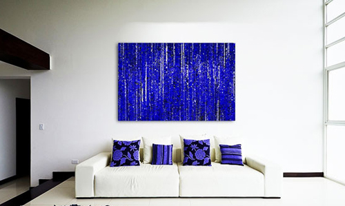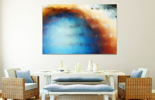 小編點評:模糊的色彩分界線,不同顏色的溶圖,看上去特別的有藝術感,藍色和下方的地中海風格家具相一致。