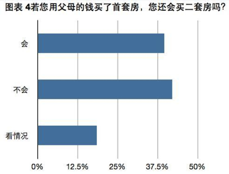 從下面圖表中,我們可以看到,有40%被訪者在使用父母錢購買了首套房后,仍會繼續購買二套房,而42%則不會,其余則依情況而定。