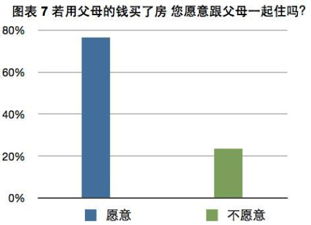 普天之下,80、90后在買了房子以后還是愿意跟父母一起住的,其占到總調查人數的76%。