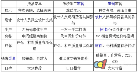 產品展示:定制家具與成品家具都具有實體店內展示以及互聯網展示兩種渠道,但是定制家具在選擇性方面要略勝一籌,可供消費者自由搭配,而傳統手工家具則缺乏相對應的展示渠道。