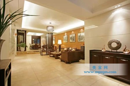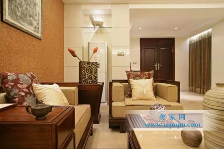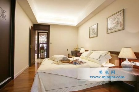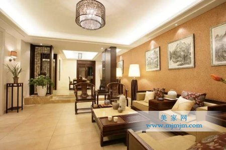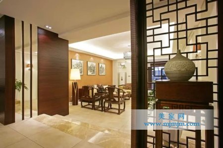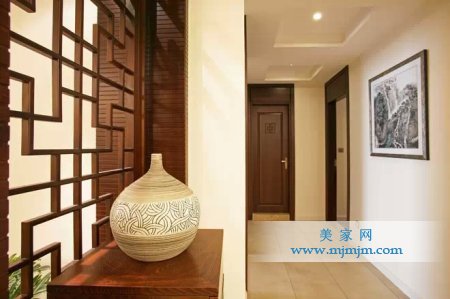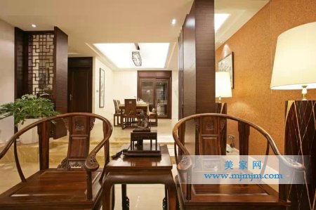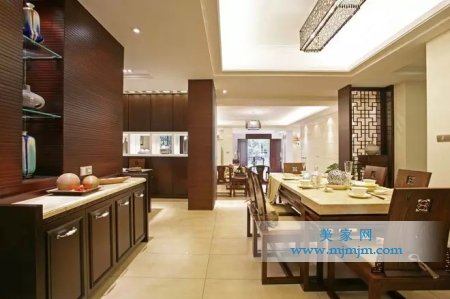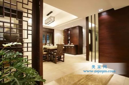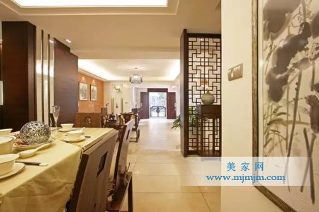 在需要隔絕視線的地方,則使用中式的屏風或窗欞、中式木門、工藝隔斷、簡約化的中式“博古架”,通過這種新的分隔方式,單元式住宅就展現出中式家居的層次之美。再以一些簡約的造型為基礎,添加了中式元素,使整體空間感覺更加豐富,大而不空、厚而不重,有格調又不顯壓抑。