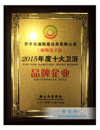 澳斯曼榮膺“2015年度十大衛(wèi)浴品牌企業(yè)”稱號