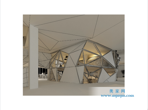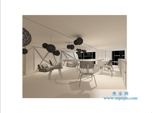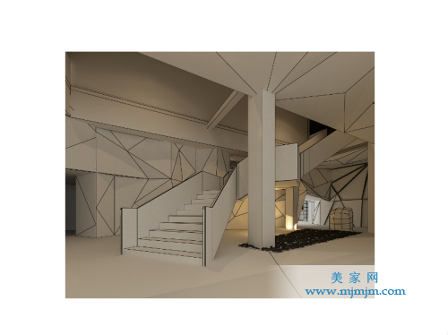 我們?cè)诜桨鸽A段,利用搭建二層和錯(cuò)層的概念,人為的把樓梯做了很多拐彎和延長(zhǎng)。由此樓梯旋轉(zhuǎn)的上空形成“烏云”,大家戲稱“設(shè)計(jì)師的烏云。”