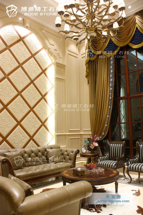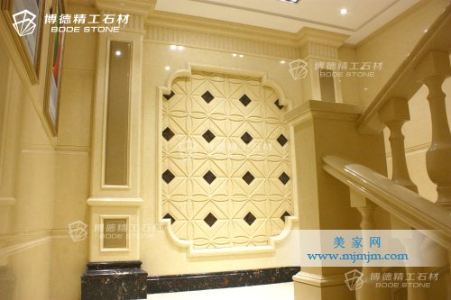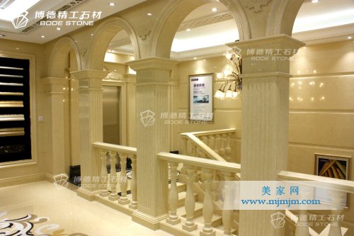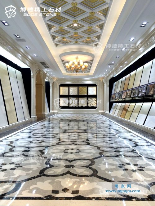瑞安旗艦店展現出博德精工石材強大的生產、研發能力,以及產品創新設計應用的能力。每個場景的設置布局、產品的設計、與實際應用的緊密結合,無不精工細致的呈現。處處體現出高貴典雅、大氣奢華的氣派。真實再現了石材產品渾厚大氣的品質,配以種類豐富的精加工造型產品,打造出媲美天然石材的裝飾環境,自然與奢華相融合,高貴與典雅相映襯,彰顯出博德精工石材的非凡品位。