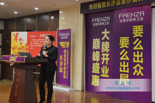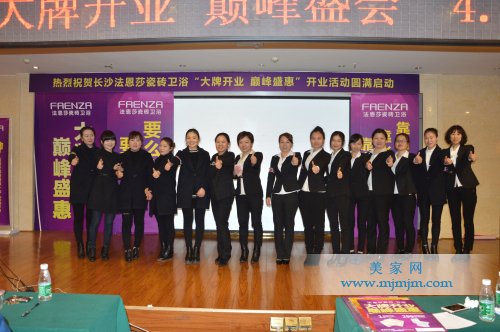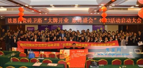 2016年3月24日,以“大牌開業 巔峰盛惠”為主題的湖南長沙法恩莎瓷磚雙店開業活動啟動大會,在長沙興湘國際商務酒店盛大召開!此次會議以法恩莎瓷磚四維一體•TOP行動為主導,法恩莎湖南區域40多名經銷商共聚一堂,一場聲勢浩大的啟動會正式拉開序幕,活動現場氣氛空前熱烈。