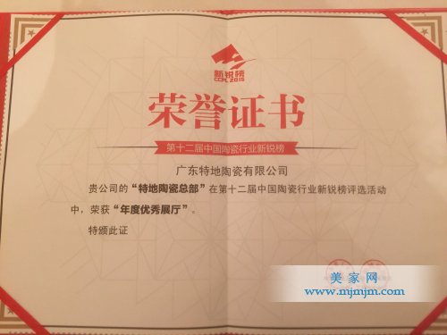 特地陶瓷榮獲年度優(yōu)秀展廳獎