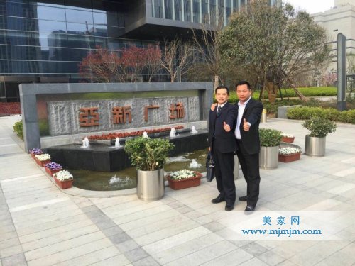 佛山歐神諾陶瓷總部劉可春工程師及鄭州營銷中心總經(jīng)理王振開在亞新地產(chǎn)總部門口合影