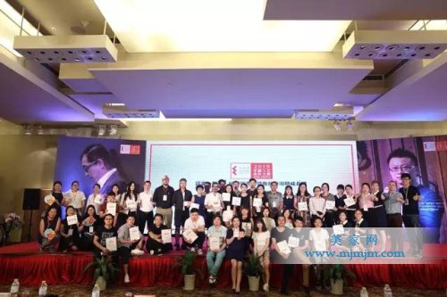 △ 評委邱春瑞先生、華東賽區導師施旭東先生、芒果獎&十間坊發起人廖瑋女士與華東賽區所有參賽設計師合影。