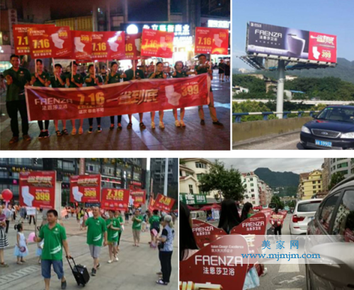 今年重慶法恩莎衛(wèi)浴投入大成本開展活動,自活動啟動以來,活動推廣地毯式發(fā)散迅速遍布重慶大街小巷,推廣形式也是大出奇招,在前期已將活動推向一個小高峰,更是為當日落地到客量提供了有效的保證。重慶法恩莎衛(wèi)浴總經(jīng)理黃藝聰向記者介紹到,法恩莎衛(wèi)浴十幾年來在重慶一直以最好的質(zhì)量,最好的服務帶給重慶人民省心省力整體衛(wèi)浴解決方案,活動經(jīng)過了24天的前期蓄水,為了展示法恩莎本次活動的力度和真正優(yōu)惠讓更多的新老客戶享受到,得到了總部公司在高速路投下高炮廣告支持,重慶當?shù)厣虉龅碾娞荨敉狻V場到處可以看到法恩莎的廣告。活動消息在如新浪、騰訊、網(wǎng)易、搜房的各大媒體都大力進行了推廣,為的就是讓更多人知道重慶法恩莎在做活動,而且本次活動輻射所有重慶周邊區(qū)縣,形成合圍之勢,所有門店動員起來把實惠帶給消費者,凸顯品牌的力量,把雜牌逼向死角!
