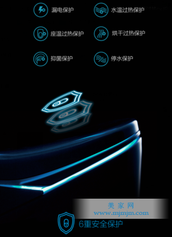 漏電保護、水溫過熱保護、座溫過熱保護、烘干過熱保護、停水保護、抑菌保護六重安全保護,法恩莎衛浴智能坐便器游艇系列再勝出一籌!