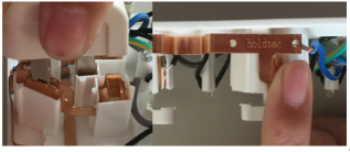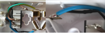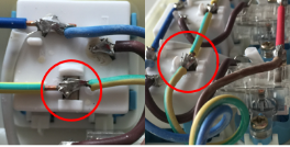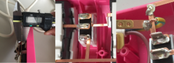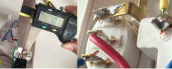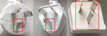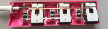 三孔插口采用線型銅絲作為導電金屬,直徑為1.01mm。兩孔插口使用直板型金屬導電板,但過載保護裝置導線僅與三孔插頭鏈接。