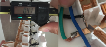 導電金屬厚度為0.41mm,相較松下產品薄。焊接是直接把線貼到銅面上的,這種焊接方式非常不穩固,懂的人自己可以試試。