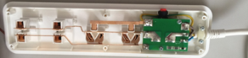 西門子延長線插座內置過載保護裝置,產品內部焊接點相對精細。但內部清晰可見焊液痕跡,整體工藝水準差強人意。