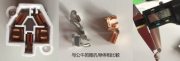 西門子采用一體結構,三孔兩孔插口相互連接,導體金屬銅板比飛利浦厚,經測量厚度為0.58mm。