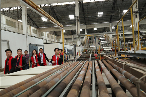 28日全體學員上午首先實地考察參觀了卡米亞清遠生產基地,充分了解產品的生產工藝,見證企業實力,特別是對規模龐大的現代化生產線、意大利薩克米7200噸壓機、西斯特姆噴墨打印機、大型煤氣站、自建變電站、超大規模的原料倉儲和成品倉庫等硬件設施的觀摩——宏偉壯觀的企業規模與實力,讓學員們震撼不已。