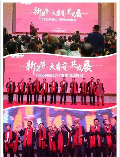 2017年2月25日-3月1日《新趨勢·大睿變·共發展》卡米亞陶瓷2017春季經銷商培訓峰會應勢在世界陶都——中國·佛山隆重召開。來自全國各地的六百多名經銷商與卡米亞公司領導以及媒體朋友齊聚千年歷史嶺南文化名城,一起見證卡米亞2017新“起點”。