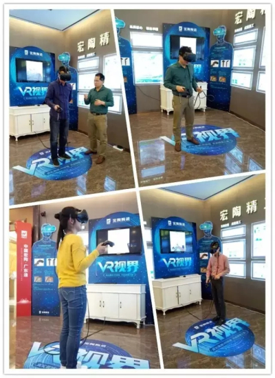 宏陶720°VR實景體驗區(qū)設(shè)立于總部展廳文化區(qū)內(nèi),帶上VR眼鏡后,你可以身臨其境般的感受新家裝修實景,不僅僅是簡單的看平面效果圖,你可以在其中走動,感受3D效果,可以開門進(jìn)入客廳、廚房、書房、衛(wèi)生間等空間,甚至可以打開房間里面的電視、空調(diào)、冰箱等,且可以根據(jù)自己的喜好更換瓷磚,讓裝修更加生動有趣。