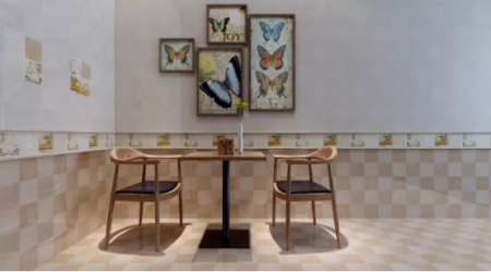 地面工字型鋪貼,墻面規矩正鋪,空間倍添活力