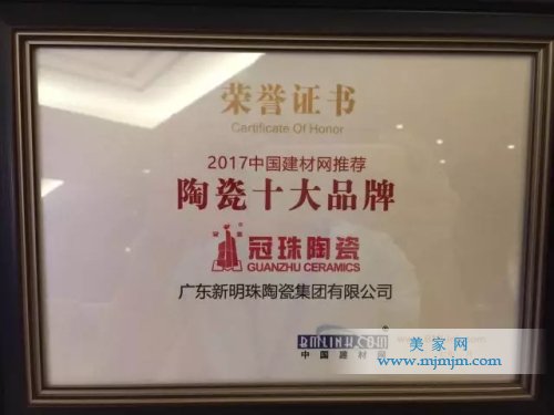 5月18日,由中國建材網(wǎng)主辦的第二屆中國建材行業(yè)高峰論壇暨“2017中國建材網(wǎng)推薦品牌”頒獎典禮在杭州舉行。在這個盛會上,冠珠陶瓷榮獲2017年中國建材網(wǎng)推薦陶瓷十大品牌榮譽(yù)。