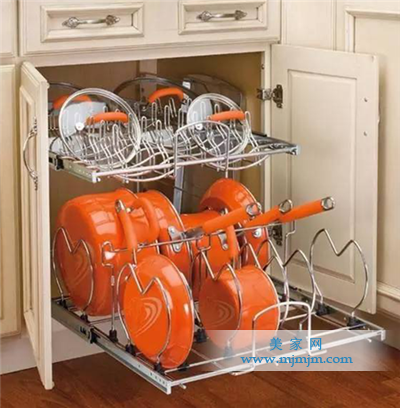 ▷在挑選櫥柜時,可以根據自身生活習慣進行個性化定制,合理利用櫥柜空間,將雜亂的廚房用具有規律的進行歸納整理。