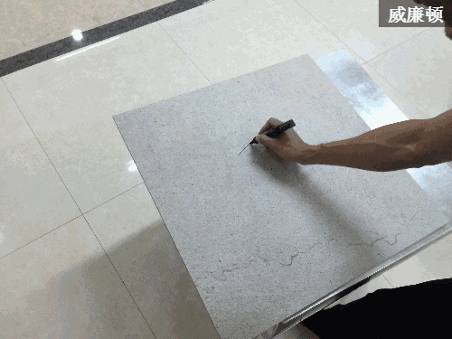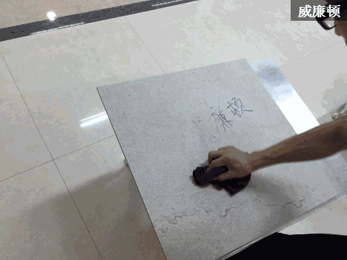 ①小編用油性筆在威廉頓陶瓷仿古磚上寫下“威廉頓”字樣