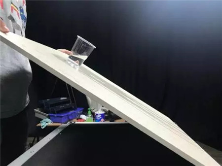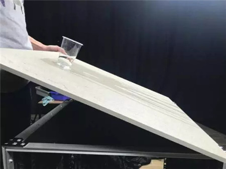 ②然后把裝有水的塑料杯子放在威廉頓陶瓷仿古磚表面,