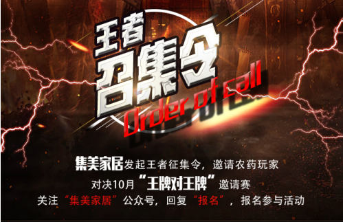 在廣大微信粉絲的支持下,經過為期一周的點贊、轉發,報名參加集美家居(大紅門旗艦商場)10月7日《王者農藥》王牌對王牌現場自由組隊pk賽的用戶熱情高漲。小編跟大家保證,活動當天,王者云集,一定激情滿滿,基情四溢,連帶只看不玩的你都會被感染那種無敵的熱情。