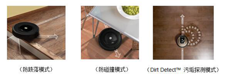 中老年人可能擔心機器掃地不如自己動手來得干凈,特別是一些邊邊角角的地帶,總覺得自己動手才安心。而Roomba的邊角清潔模式,簡直就是衛生死角克星。當遇到經常“藏污納垢”的墻壁邊緣和角落時,Roomba會自動切換至邊角清潔模式,深度清潔聚集在這些邊角的灰塵和污垢。Roomba的智能不僅止步于此。當清潔家具或其它雜物的四周和下方區域時,Roomba則會切換至脫困模式,輕松擺脫雜物屏障;在當輾過電線時,Roomba又會智能切換到防纏繞模式,逆向旋轉雙主刷從而釋放線纜;當行至樓梯處,Roomba還能自動剎車,避免跌落;當檢測到污垢重災區時,密集的灰塵和污垢將自動觸發Dirt Detect™ 污垢探測模式,Roomba將重點清潔這些區域,并且掃不干凈決不罷休。